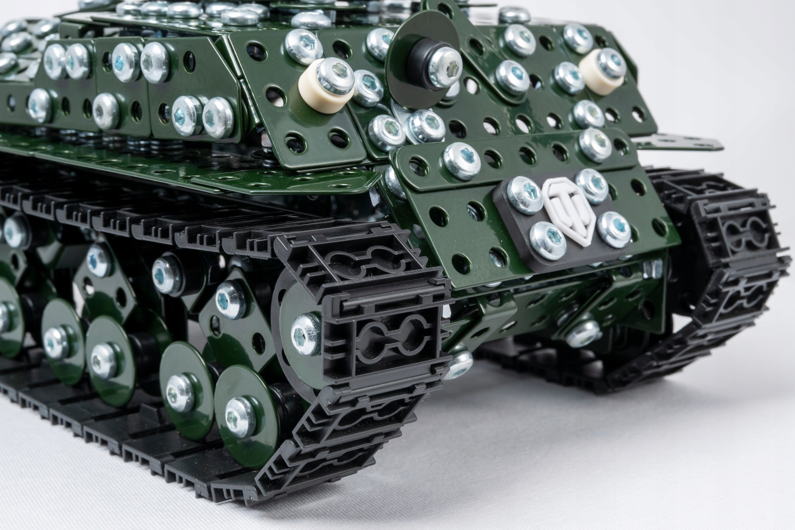 Model posiada ruchomą wieżę, lufę i gąsienice. Wymiary złożonego czołgu to 27 x 13.5 x 14 cm. W zestawie gratisowy kupon na bonusy do wykorzystania w grze (dla aktywnych graczy jak i nowych użytkowników).