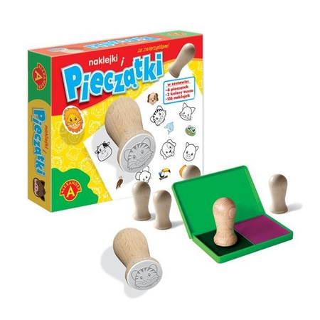 pieczątki – 6 szt., naklejki – 135 szt., poduszka na tusze - 2 kolory, instrukcja.
